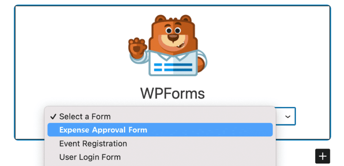 You can add the expense approval form on your site using the WPForms Gutenberg block: